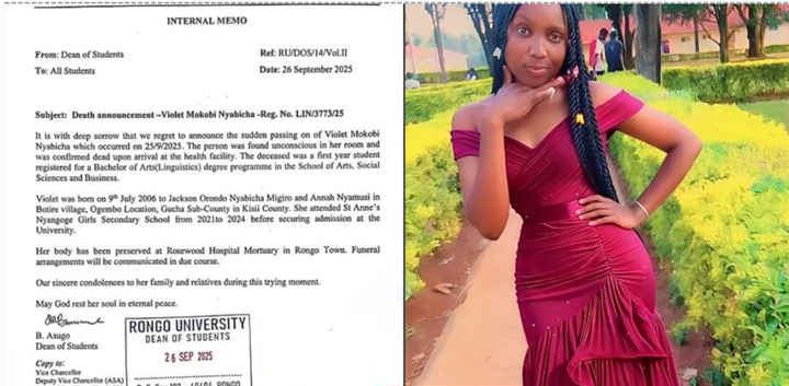 The university also revealed more about her background. Violet was born on July 9, 2006, to Jackson Orondo Nyabicho Migiro and Annah Nyamusi, in Botore village, Ogembo location, Kisii County.